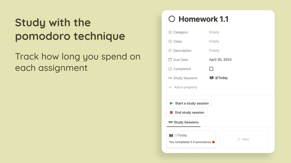 📝 Assignment Database: Keep track of all your assignments by organizing them by category, course, and due date. Never miss an important deadline again!